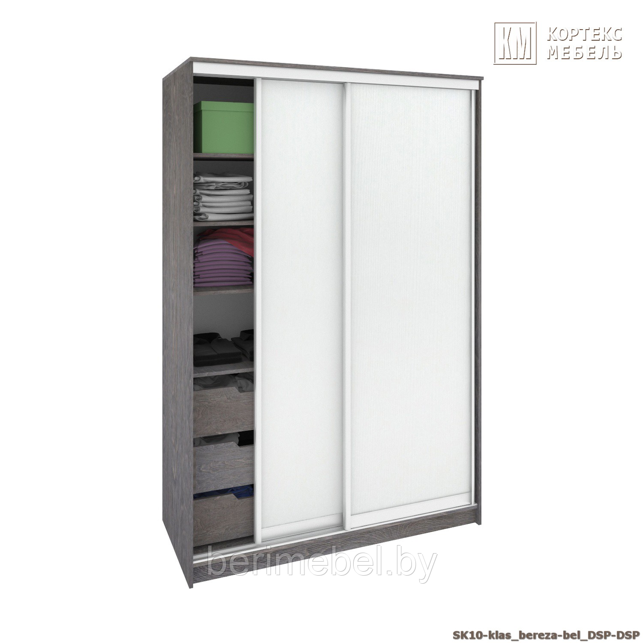 Шкаф-купе Сенатор ШК-10 (гл.650ММ.) (1,45М) классика, ДСП+ДСП, берёза / Белый КОРТЕКС