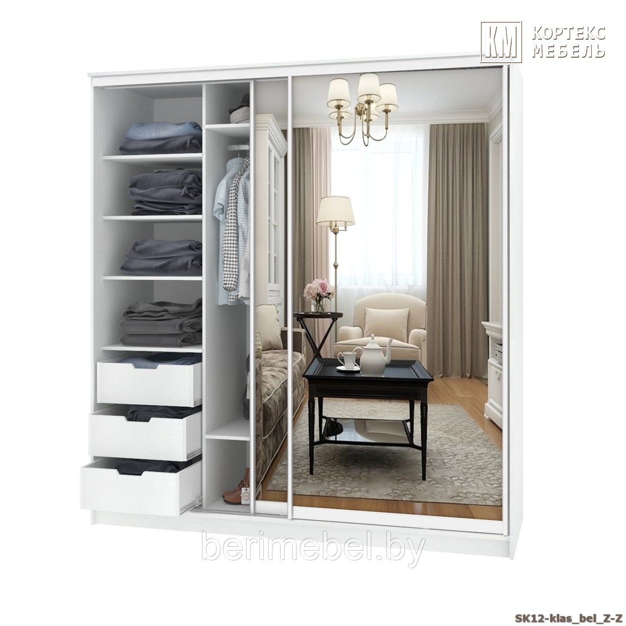 Шкаф-купе Сенатор ШК-12 (гл.650ММ.) (2,05м) классика, Зеркало+Зеркало, Белый КОРТЕКС