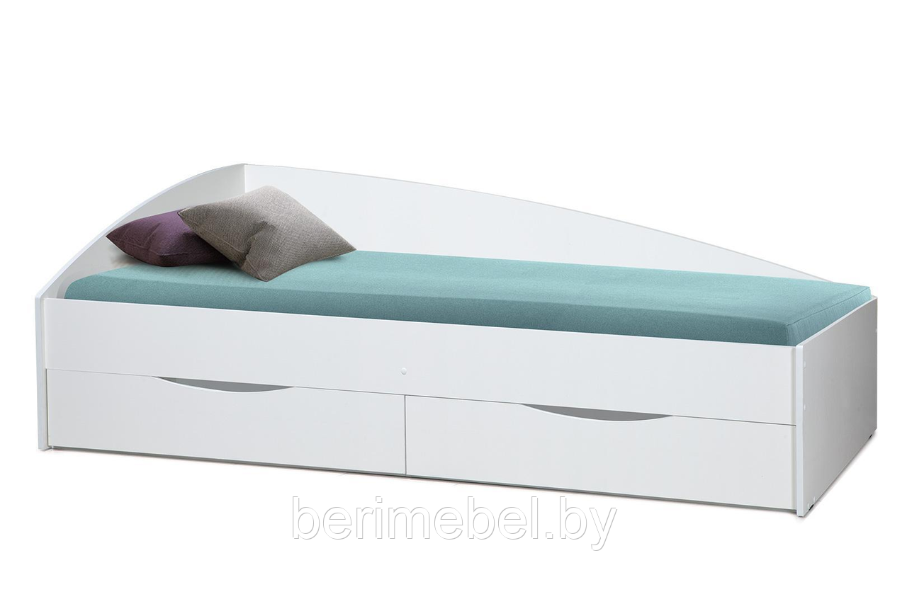 Кровать одинарная Фея - 3 (асимметричная) (2000х900) New (белый / белый / ДВПО белый) от российской фабрики Олмеко отлично подойдет для многих квартир. Многолетний опыт в производстве позволил создать стильную, комфортную и доступную мебель с долгим сроком службы.