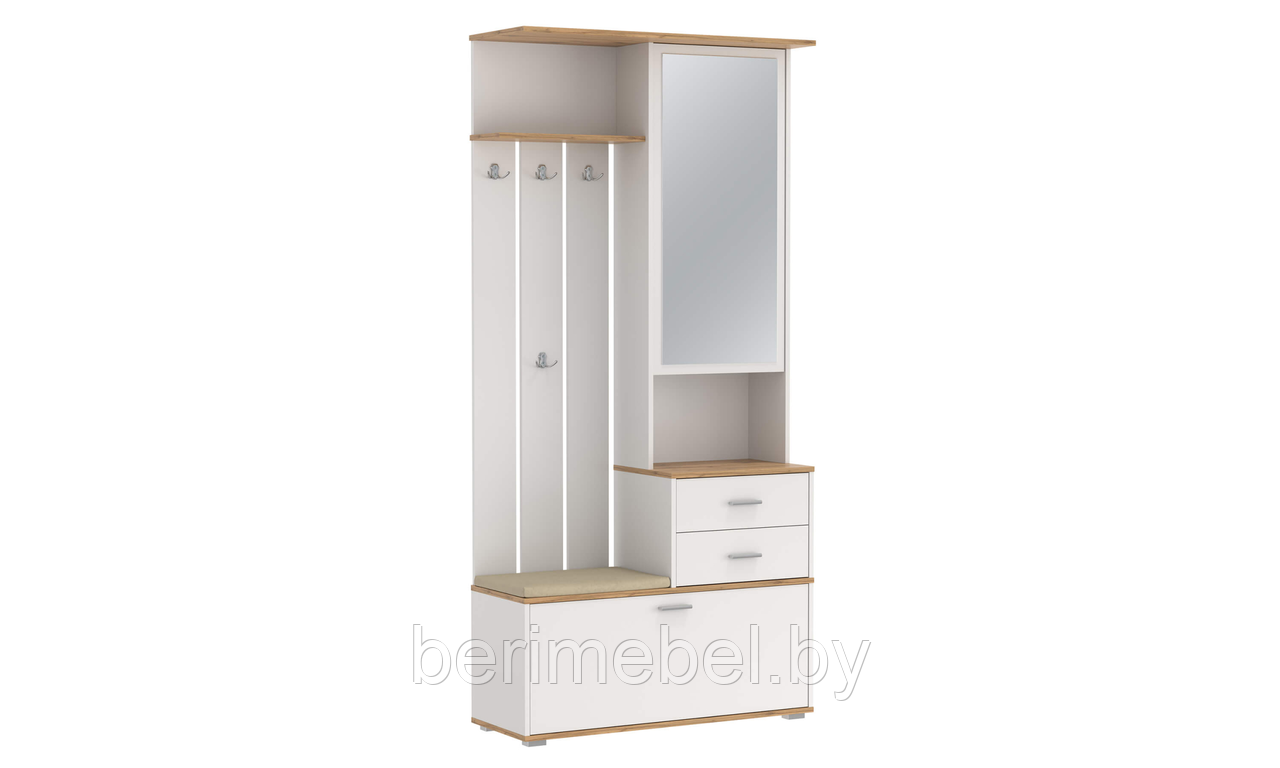 Шкаф для прихожей 65.08 Антре с зеркалом (белый/дуб вотан) Олмеко