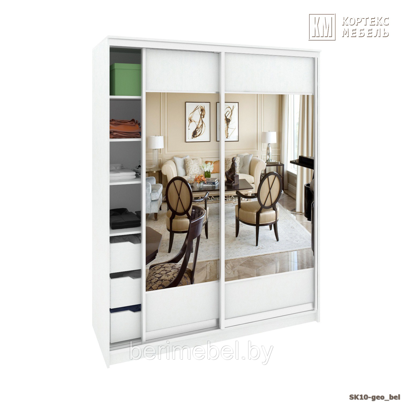 Шкаф-купе СЕНАТОР ШК10 (1,45м ) (гл.650мм.) геометрия, ДСП+Зеркало+ДСП, Белый Кортекс-Мебель