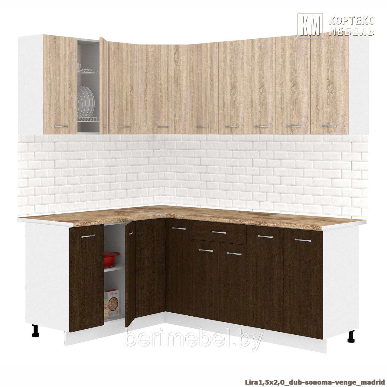 Кухня Корнелия ЛИРА угловая 1,5х2,0, Дуб сонома / Венге, Кортекс