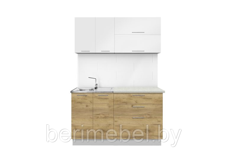 Набор мебели для кухни "Адель-Ш" проект СН-114 без стекла (ДСП) 1,4м Белый/Дуб крафт золотой Артём-Мебель